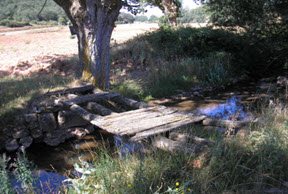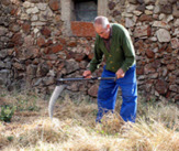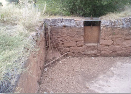 A medio camino entre la fragua y el potro, tropiezas con la piedra arenisca de afilar, precedida por la pila de almacenamiento del agua que la mantiene siempre húmeda.