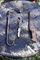 El matarife se arma con el gancho.