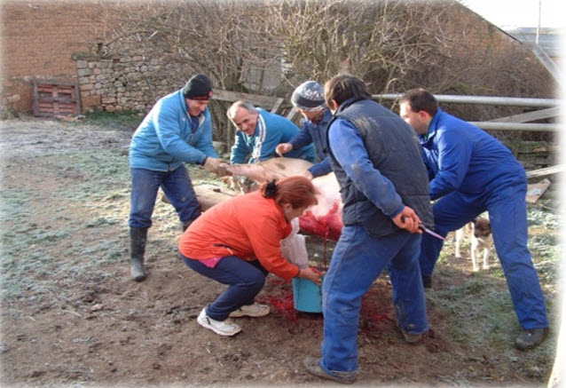 Se suele adquirir el marrano en Octubre. Año y tres meses, mes más, mes menos, dura el engorde. “A todo puerco le llega su San Martín.”